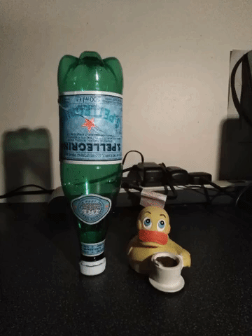I simply, reduced the rubber ducks down to just the coffee duck and switch out the cafetiere for a San Pellegrino water bottle. The rubber duck represents my coffee and programming tendencies. While San Pellegrino is what I drink other than coffee (among other soda waters). The two objects simply just rotate around a central point. However, originally, once a full circle was completed I wanted the water bottle to topple over and smash the duck on the head. But just before the bottle hits the duck I wanted to switch out the screen for an image of Windows’s famous Blue Screen Of Death (BSOD). Why? you may ask. Well, I’m a bit random like that and over the last 9 or 10 months my life has been plagued with various BSOD’s to the point I had to get a new machine, since it appeared to be a motherboard issue. Though I decided to drop the BSOD idea since it was a little to jarring and didn’t quite work out how I would of liked (but that’s development for you). So I just ended up with the two rotating around a central point [fig. 3].